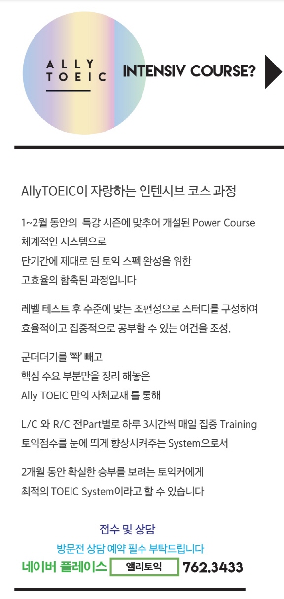 2024년 7월~8월 Ally TOEIC 접수안내 및 개강안내