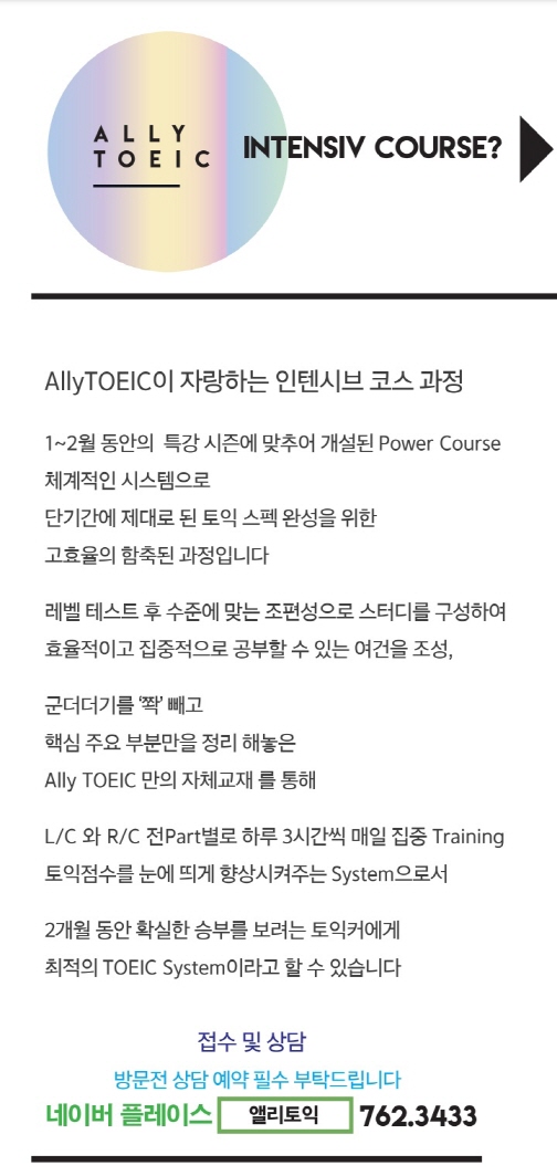 2023년 1월~2월 Ally TOEIC 접수안내 및 개강안내