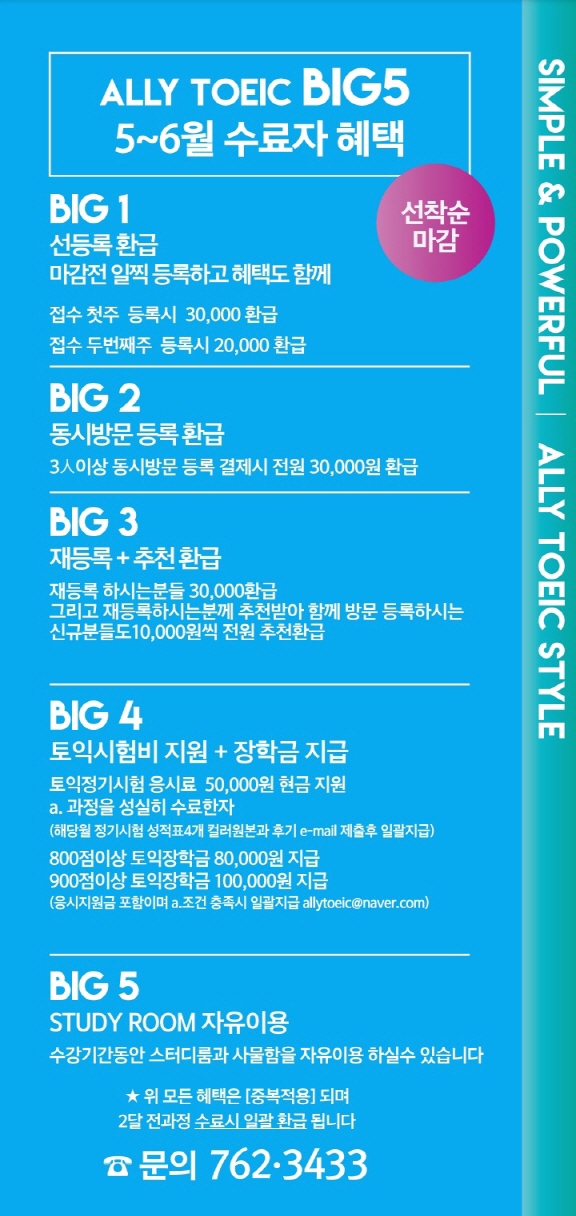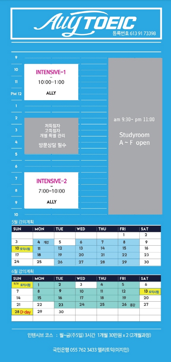 2023년 5월~6월 Ally TOEIC 접수안내 및 개강안내